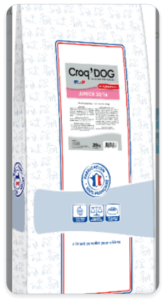 Le savoir faire français, le gage de qualité Croquettes naturelles Précuisson à la vapeur afin d’optimiser l’appétence et la digestibilité Sans ajout de colorant, d’arôme artificiel, ou de conservateur Aliment complet pour chiots et chiens junior